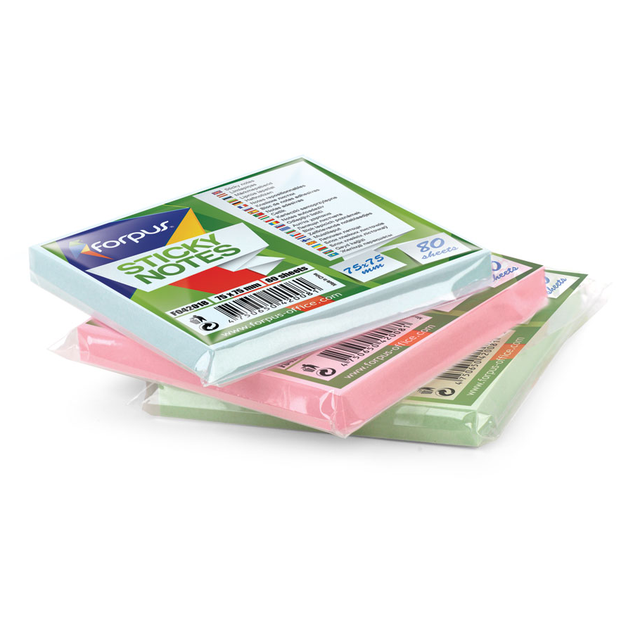 The notes sized 75 x 75 mm. High-quality paper in pastel colours. Glue leaves no traces after sticking.